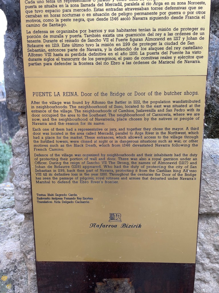 This is Puenta la Reina (or The Queens Bridge) in all its glory. Sancho 111 wife Doña Mayor commanded that this 6 arch bridge was built to support the increasing number of medieval pilgrim’s who joined the camino at this stage.