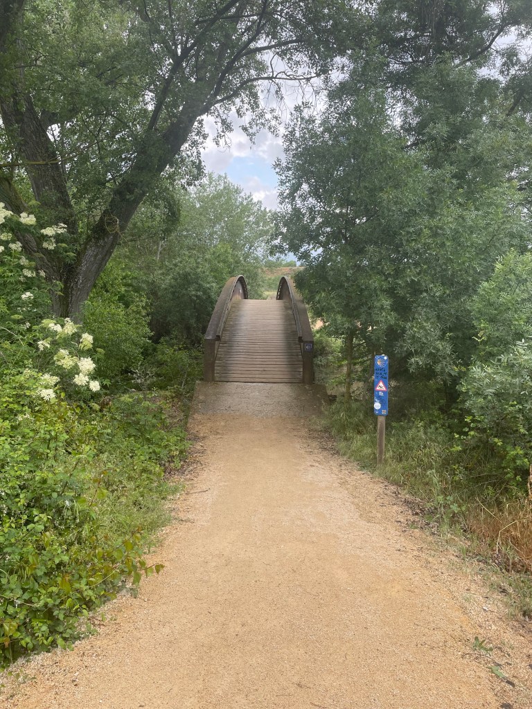 The trail today took us through a few villages/towns enroute to Estella. We walked for several hours drenched in rain and mud and went over many bridges of all designs.
