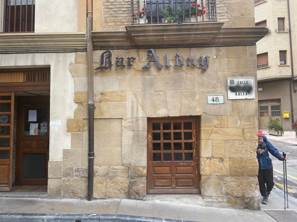 After another km of walking through this beautiful town, we arrived at our Hostel for tonight. Alda Estella Hostel. Absolutely lovely hostel in a quiet part of town. A comforting warm shower, clothes washed and dried and out for a couple of pints and dinner. Early to bed tonight to get a good long sleep for tomorrow’s journey to Los Arcos.