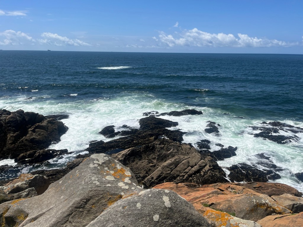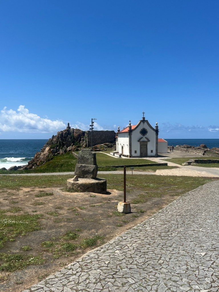 With the waves crashing off the rocks and the strong smell of seaweed in the air, we made our way to Vila do Conde passing numerous cafe/restaurants that all seemed to look the same. Square shaped buildings with large South-facing windows and a dozen or so tables out side with a large burgundy ‘Superbock’ umbrella on each. With the never ending boardwalk, deja vu happened again and again.