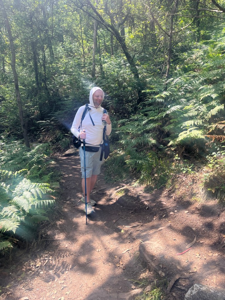 The walk today was a mixture of cobbles and woodland walks. After a nice breakfast of cheese and ham baguettes and coffee, we had quite a nice wee gradient to climb before a lush forest path that led to beautiful scenery and a river crossing.